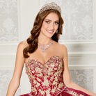 Beam with pride as you show up in this majestic Princesa by Ariana Vara PR30121 creation. This strapless gown with embroidery, 3D butterfly appliques, and beadwork embellishment is sure to turn heads. Showcasing a sweetheart neckline, basque waist and lace-up open back. The ballgown skirt is pleated and flares out into a remarkable chapel train. This ensemble also includes a matching small cape. Fall in love when you slip on this Princesa by Ariana Vara PR30121 masterpiece. Model is wearing the Wine/Gold color.